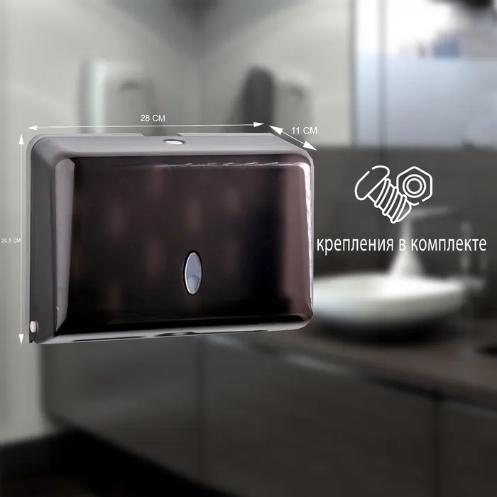 Диспенсер для бумажных полотенец в листах, пластиковый (макс. 200 шт.), 27×11×20.5 см, чёрный — Характеристики