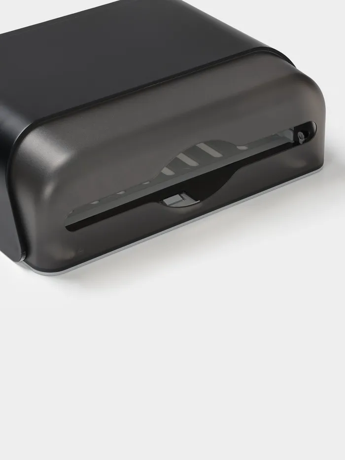 Аккуратная выдача бумажных полотенец без лишних хлопот. Простое и надёжное решение для экономии и порядка на кухне, в ванной комнате и в офисе. Устанавливается настенно с помощью саморезов, не требует источника питания. Чёрный цвет корпуса практичен и универсален.