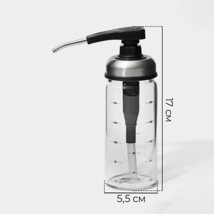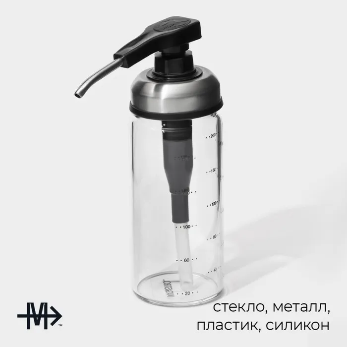 Диспенсер для масла Magistro «Мист», 200 мл, 5.5×17.5 см, с мерной шкалой, стекло, прозрачный — Характеристики