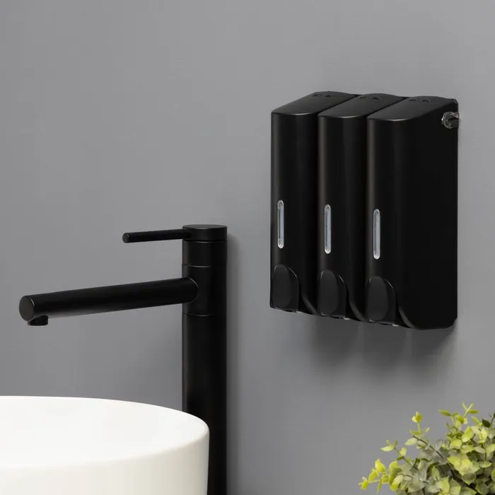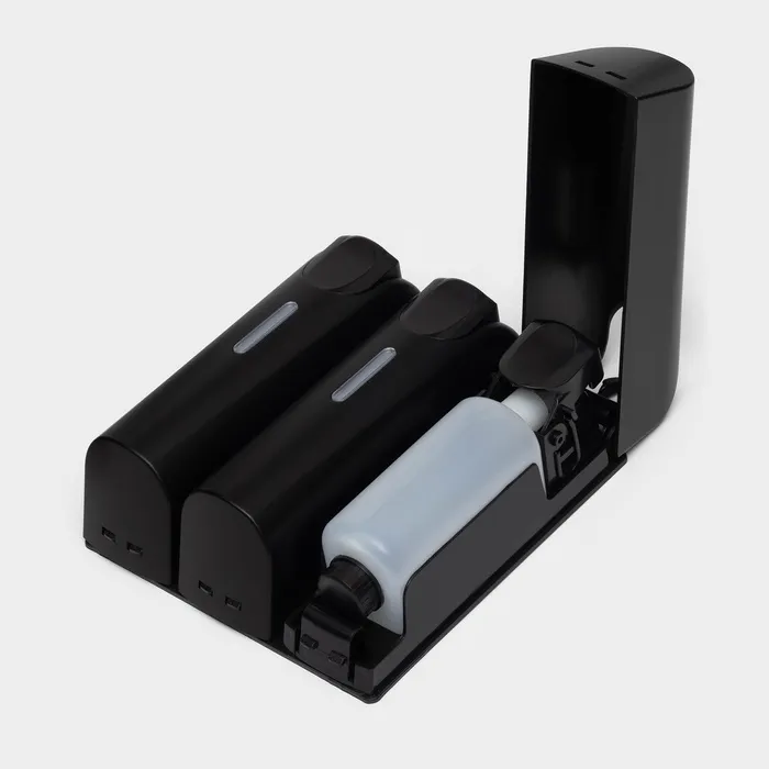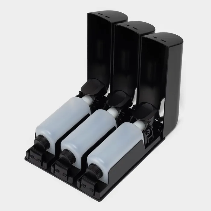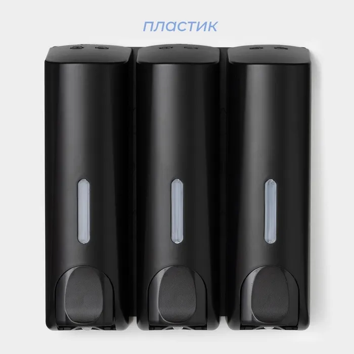 Диспенсер для мыла SAVANNA, механический, 3 отсека по 350 мл: шампунь, кондиционер, гель, чёрный — Характеристики