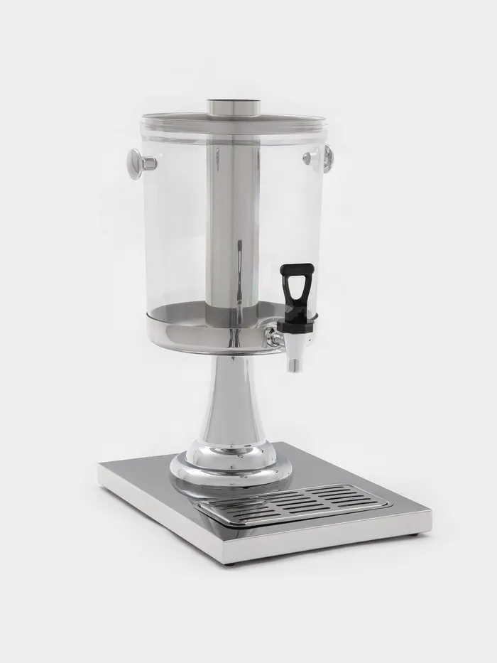 Изготовленный из высококачественной нержавеющей стали, диспенсер не только привлекает внимание своим элегантным серебристым цветом, но и гарантирует долговечность и устойчивость к коррозии. Объём составляет 8 литров, что позволяет подавать достаточно напитков для большого количества людей, а компактные размеры 350×260×600 мм делают его удобным для транспортировки и размещения.