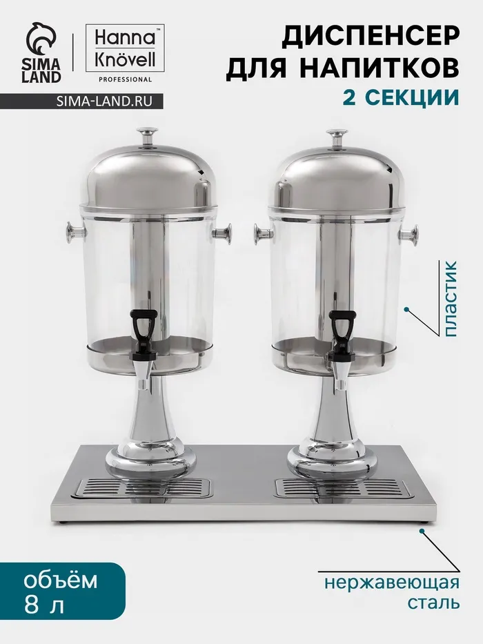 Диспенсер для напитков Hanna Knövel, 8 л, 350×260×600 мм, нержавеющая сталь, серебристый — Характеристики