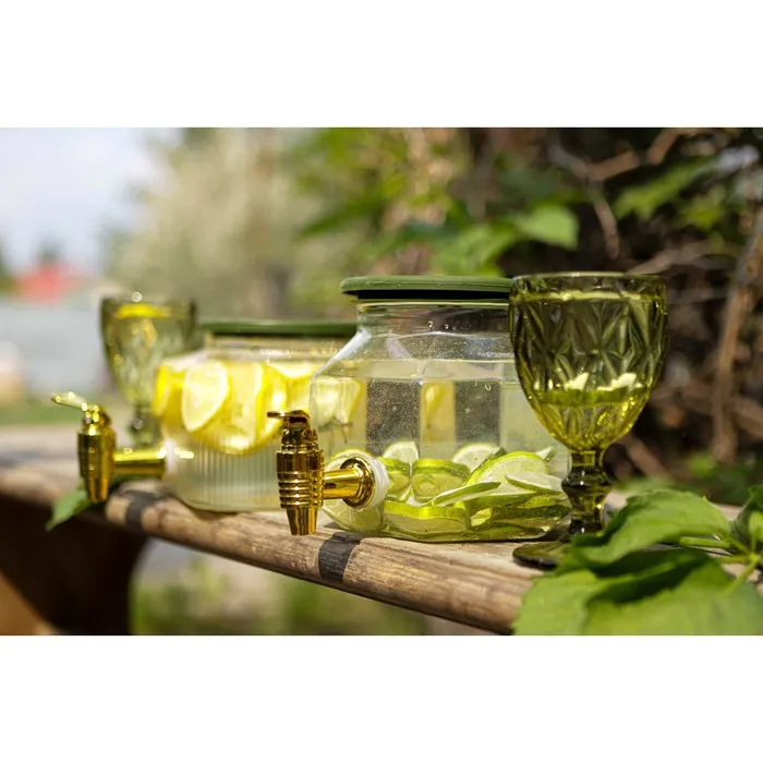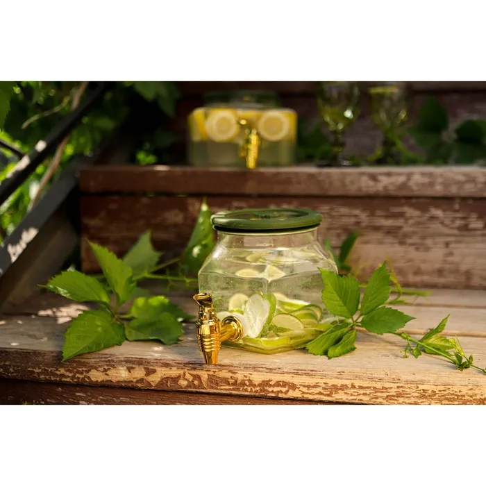 Стеклянный кувшин на подставке с краном для напитков можно наполнить прохладным лимонадом в летний зной, теплым пуншем во время осенней хандры или алкогольным коктейлем для поднятия настроения у гостей. Краник легко поворачивается, крышка плотно прилегает, а сама ёмкость занимает не так много места на столе, как может показаться на первый взгляд.