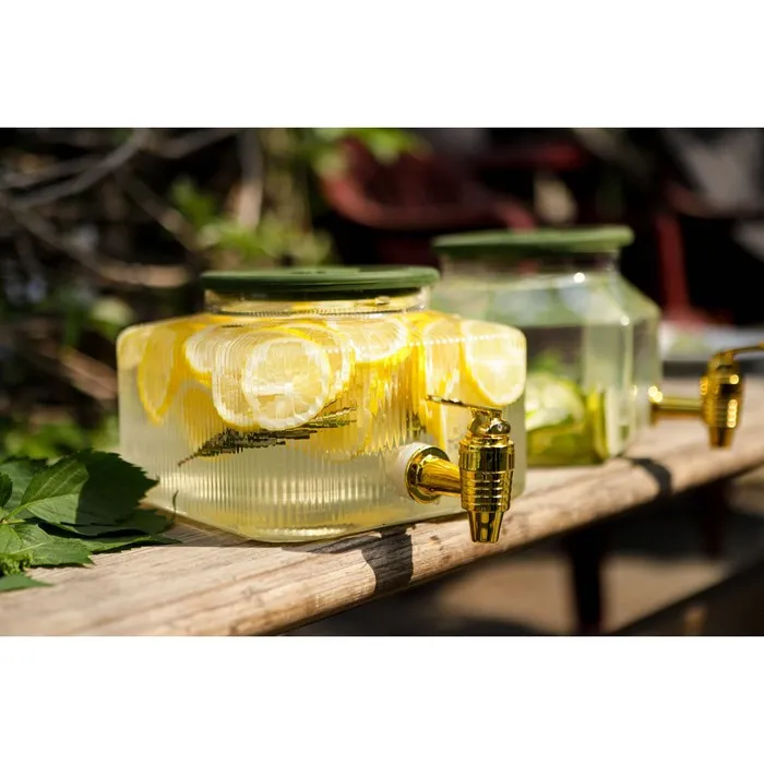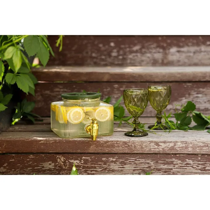 Стеклянный кувшин на подставке с краном для напитков можно наполнить прохладным лимонадом в летний зной, теплым пуншем во время осенней хандры или алкогольным коктейлем для поднятия настроения у гостей. Краник легко поворачивается, крышка плотно прилегает, а сама ёмкость занимает не так много места на столе, как может показаться на первый взгляд.