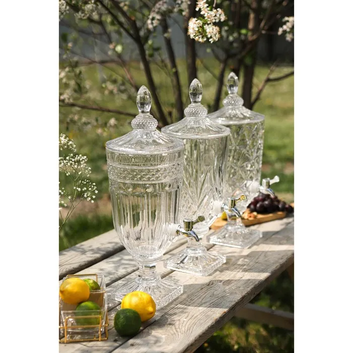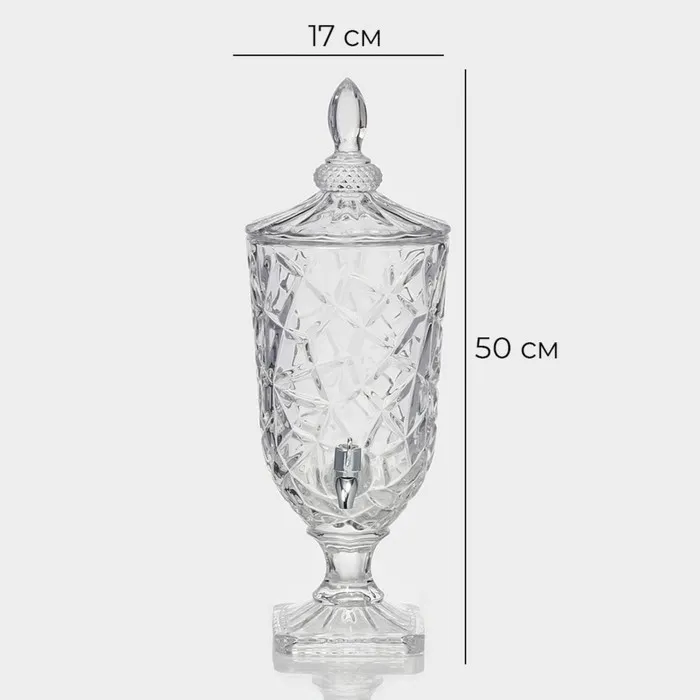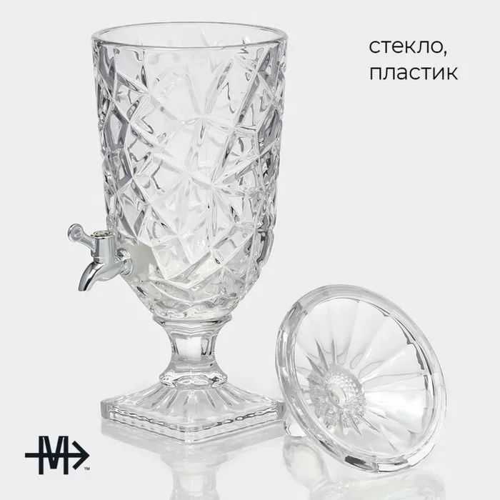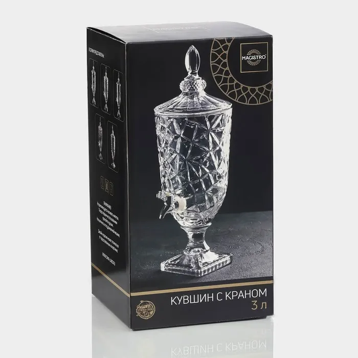 Диспенсер для напитков Magistro «Сияние» — это стильное и функциональное решение для вашей кухни! Элегантный аксессуар объёмом 2,7 литров станет незаменимым помощником в организации хранения и подачи напитков. Размеры диспенсера составляют 17×50 см, что позволяет удобно разместить его на столе или в шкафу. Изготовленный из высококачественного стекла, диспенсер Magistro «Сияние» отличается прочностью, долговечностью и устойчивостью к царапинам, пятнам и высоким температурам. Благодаря стильному дизайну и прозрачному материалу, он станет прекрасным дополнением к любому современному кухонному интерьеру, добавляя роскоши и элегантности.