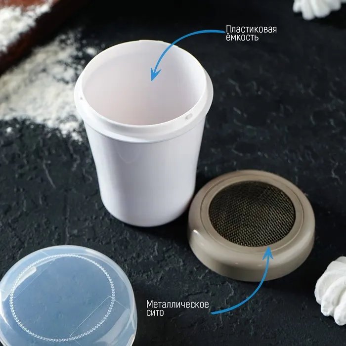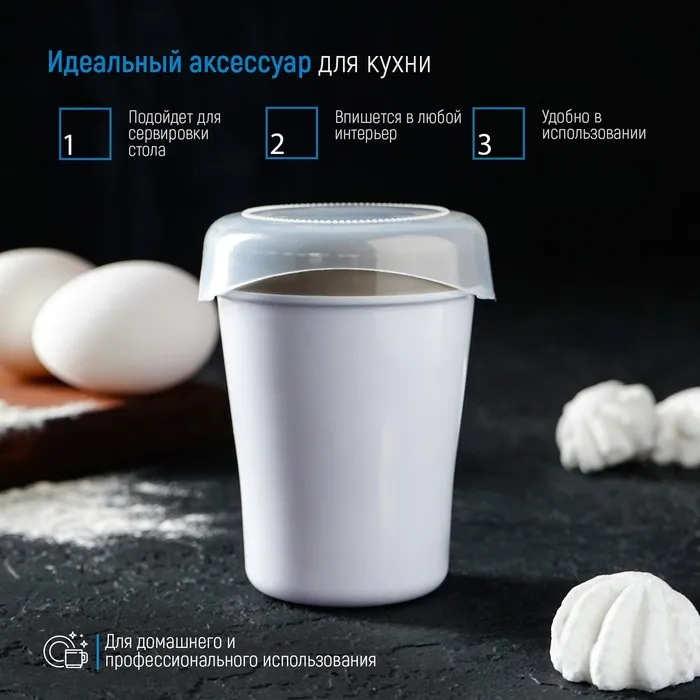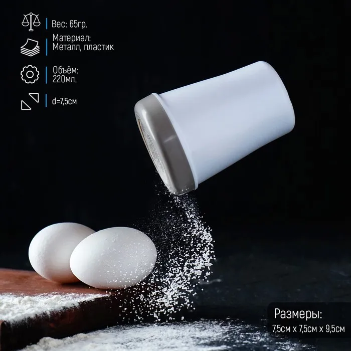 Диспенсер для сахарной пудры Доляна, 220 мл, 7.5×9.5 см, белый — Характеристики