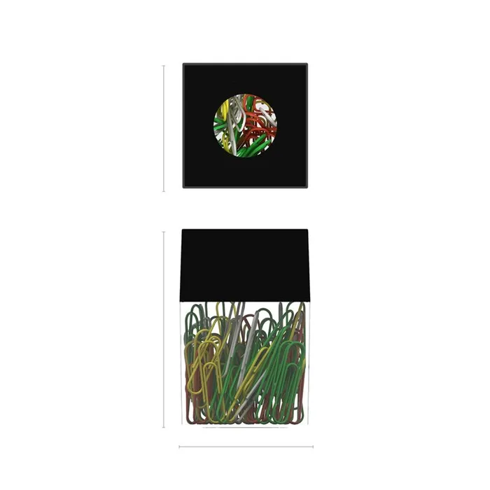 Компактный пластиковый диспенсер для хранения скрепок со встроенным магнитом, предотвращающим рассыпание скрепок. В набор входят 100 штук металлических скрепок с оцинкованным покрытием.