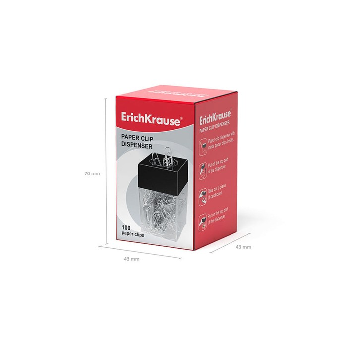 Диспенсер для скрепок магнитный, ErichKrause, в наборе 100 цветных скрепок, картонная упаковка — Характеристики