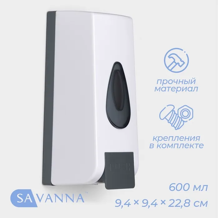 Диспенсер для жидкого мыла SAVANNA, механический, 600 мл, белый — Характеристики