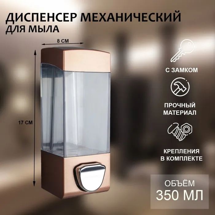 Механический диспенсер для мыла гармонично впишется в любой интерьер. Вы можете использовать его не только для жидкого мыла, но и для антисептиков. Надёжная система подачи исключает протекание и экономит содержимое.