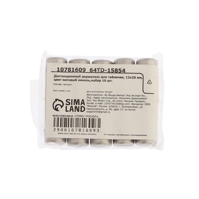 Дистанционный держатель для табличек, 12×20 мм, цвет матовый никель, набор 10 шт. — Характеристики