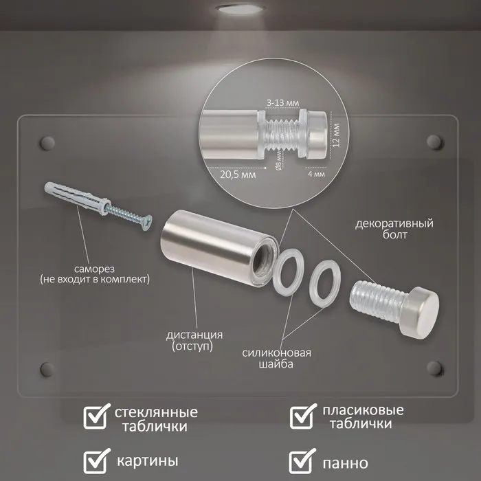 Дистанционный держатель предназначен для закрепления информационных табличек на определенном расстоянии от стены.