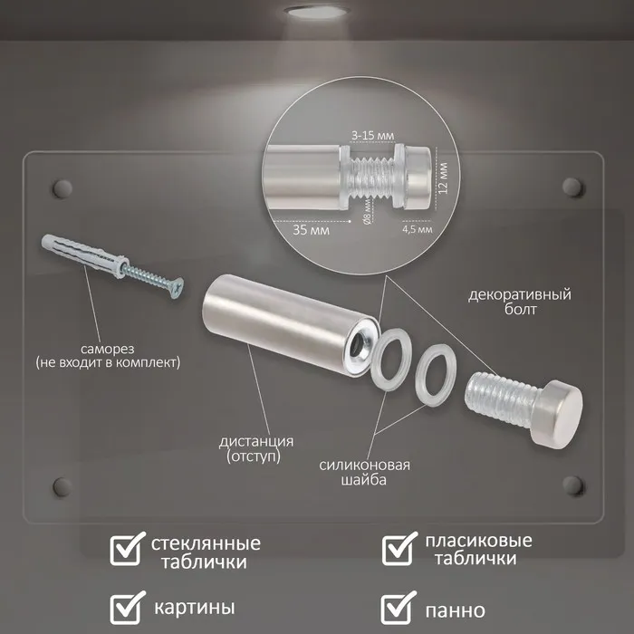 Дистанционный держатель для табличек, 12×40 мм, цвет матовый никель, набор 10 шт. — Характеристики