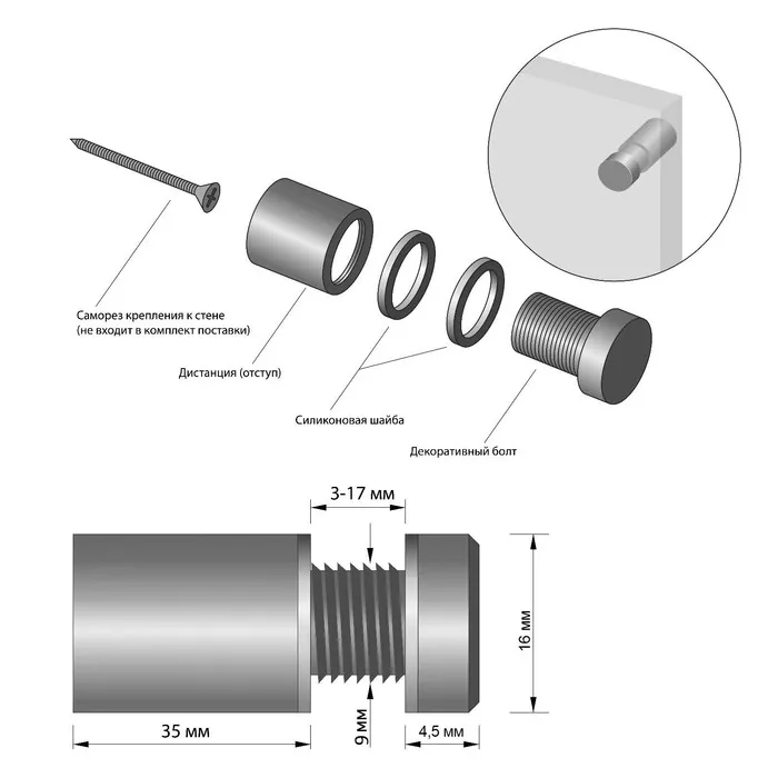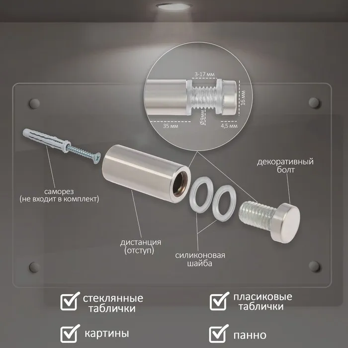 Дистанционный держатель предназначен для закрепления информационных табличек на определенном расстоянии от стены.
