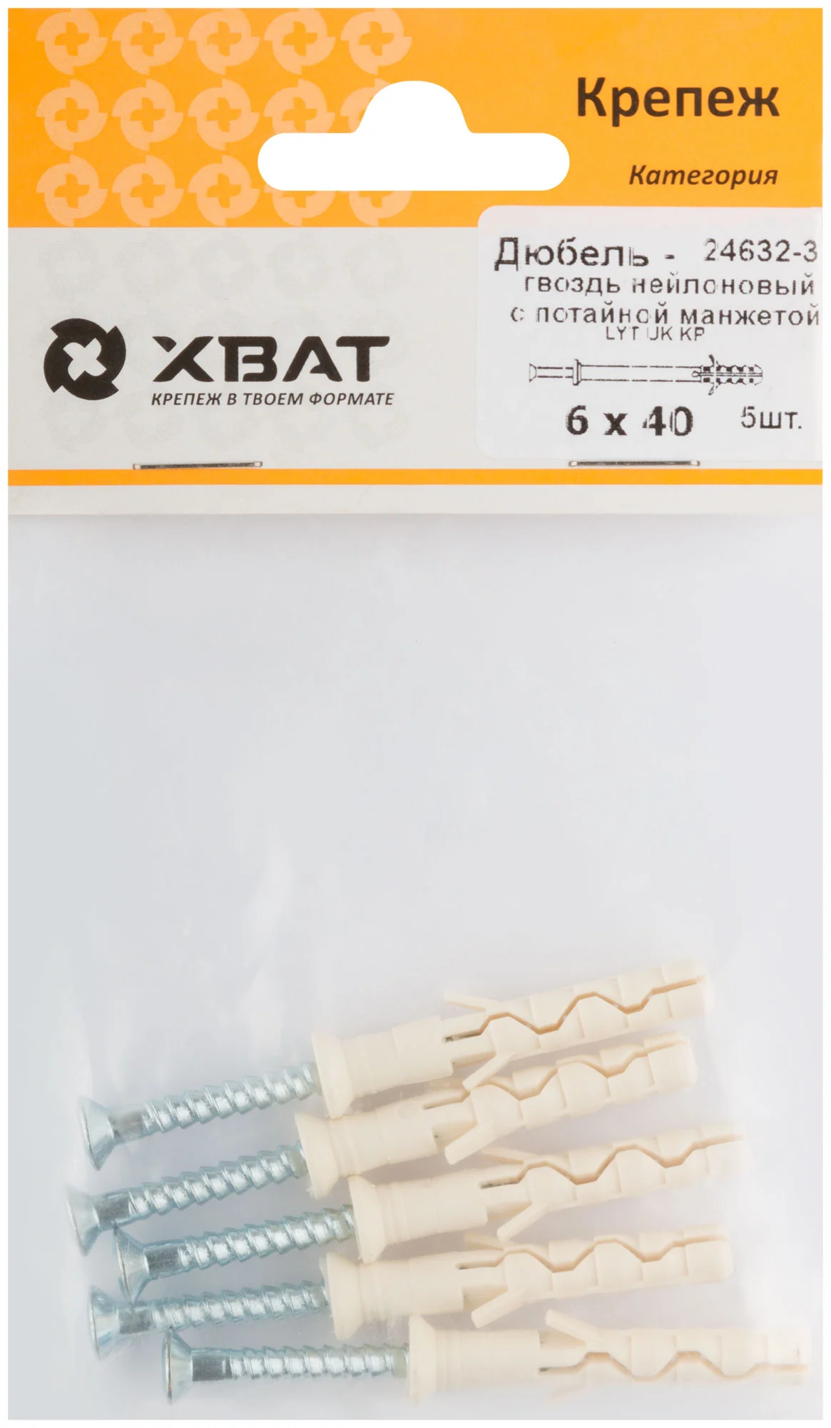 Выберите нейлоновые дюбель-гвозди от XВАТ, чтобы обеспечить быстрое и надежное крепление. Артикул 24632-3 гарантирует высокое качество и долговечность.