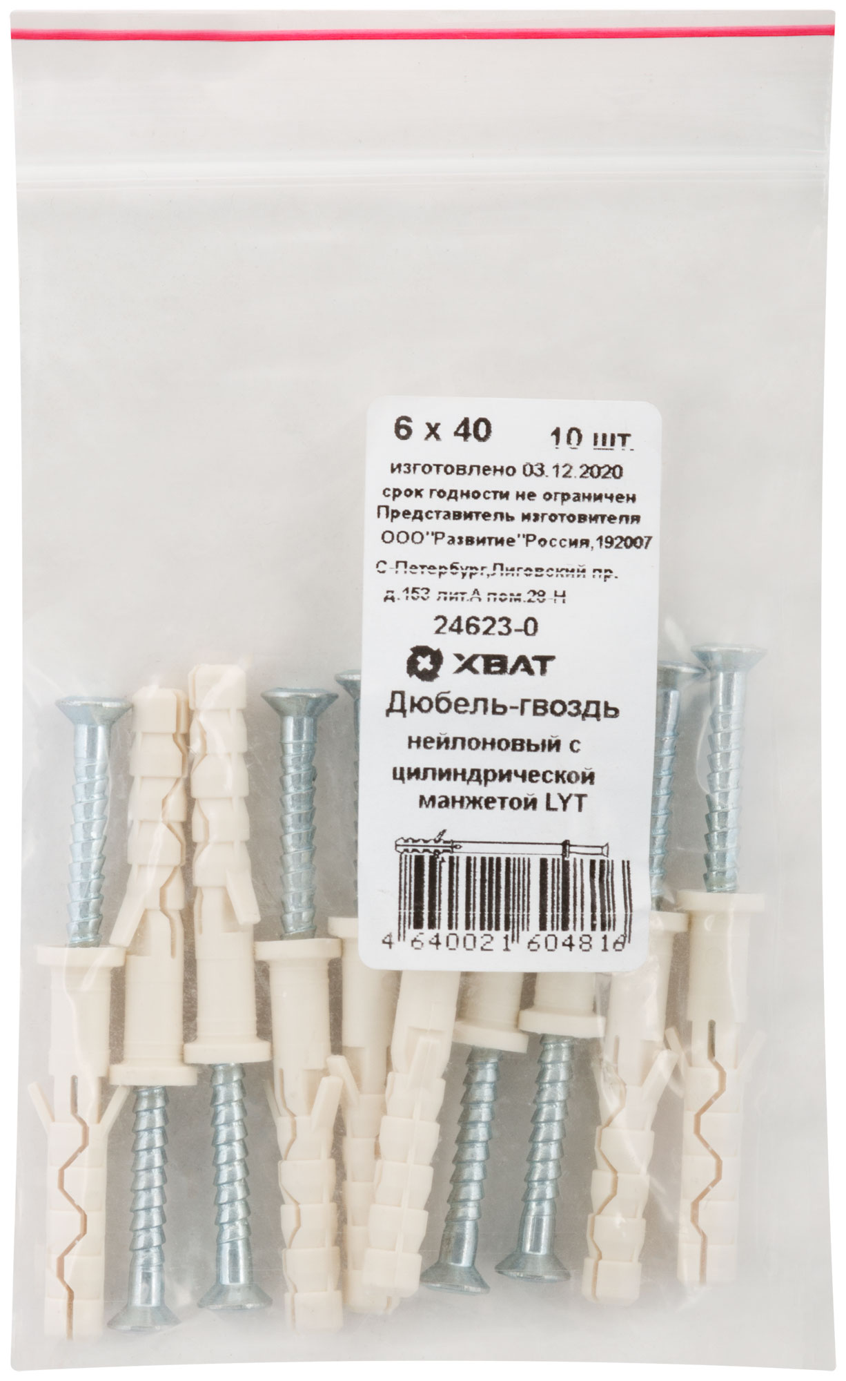 Выберите дюбель-гвоздь от XВАТ, чтобы обеспечить надежность и долговечность вашего монтажа. Код товара: 24623-0.