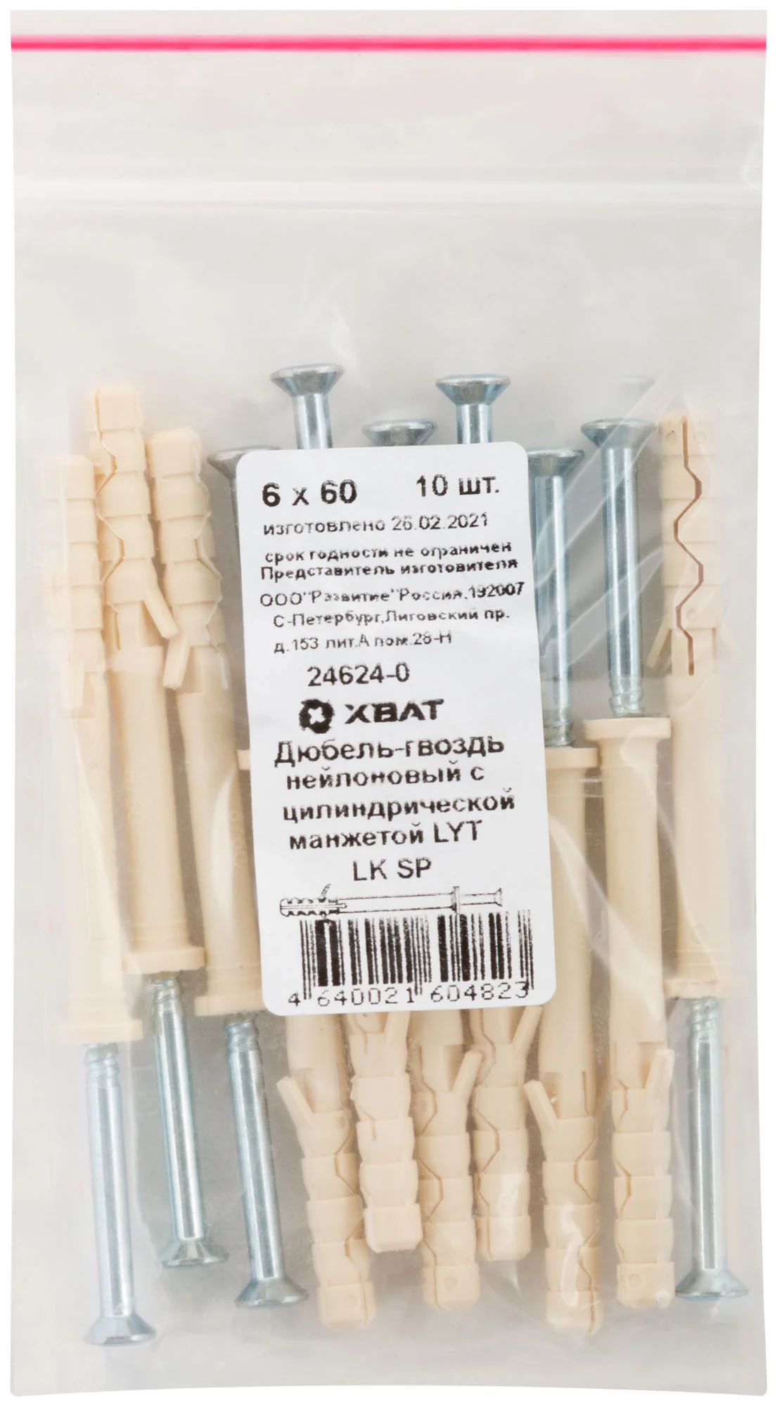 Дюбель-гвоздь с цилиндрической манжетой 6x60 мм для быстрого монтажа