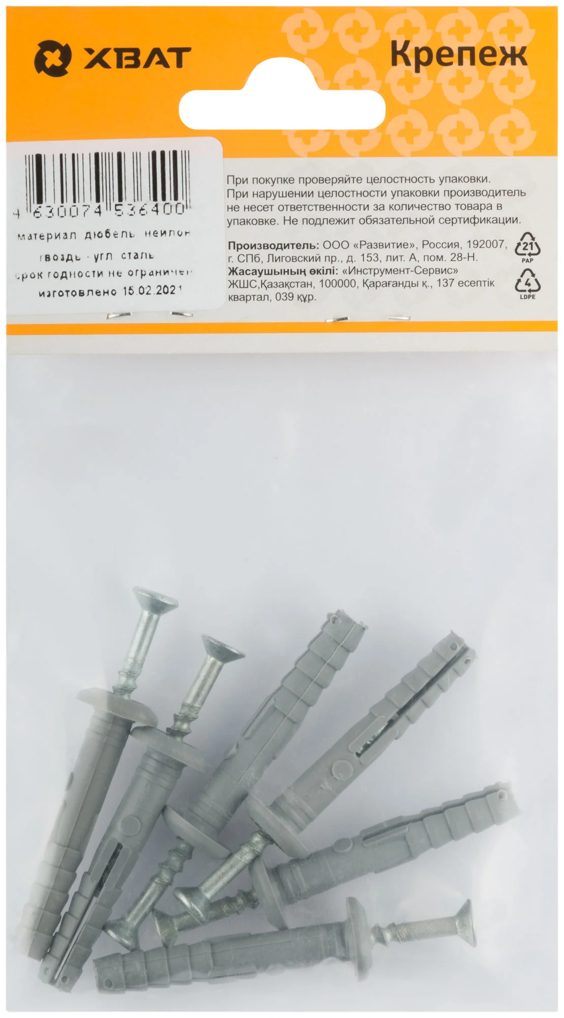 Выберите дюбель-гвоздь XВАТ 24540-2 для надежного и долговечного крепежа ваших конструкций.