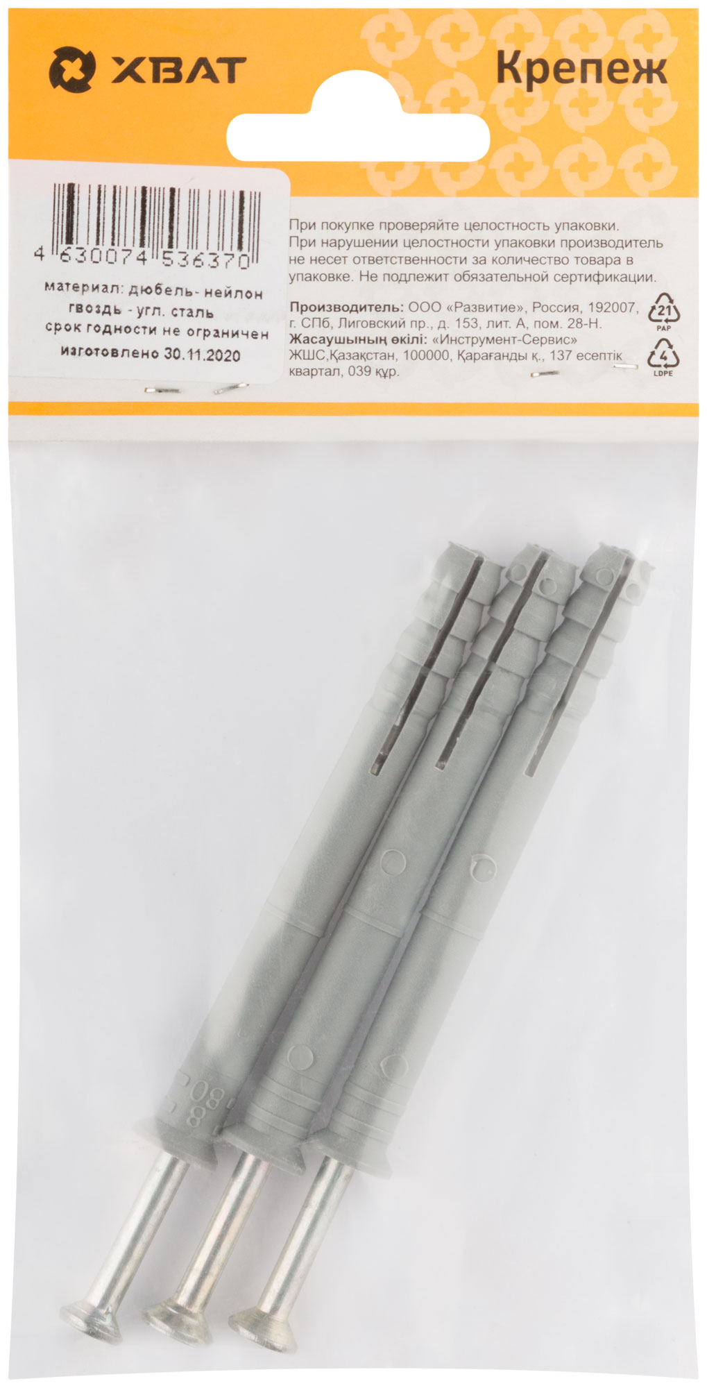 Полипропиленовый дюбель-гвоздь 8 х 80 для надежного крепления