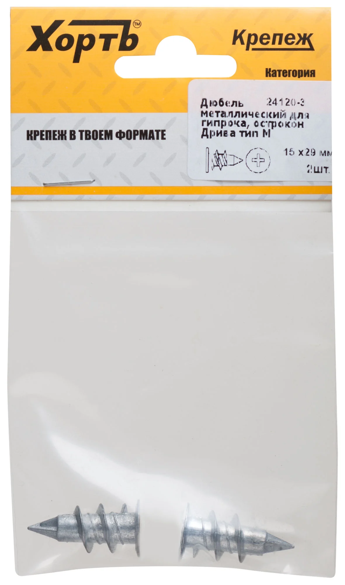 Дюбели выполнены из прочного металла, что обеспечивает долговечность и устойчивость к механическим воздействиям. Остроконечная форма позволяет легко ввинтить дюбель в лист гипсокартона, минимизируя риск повреждения материала.