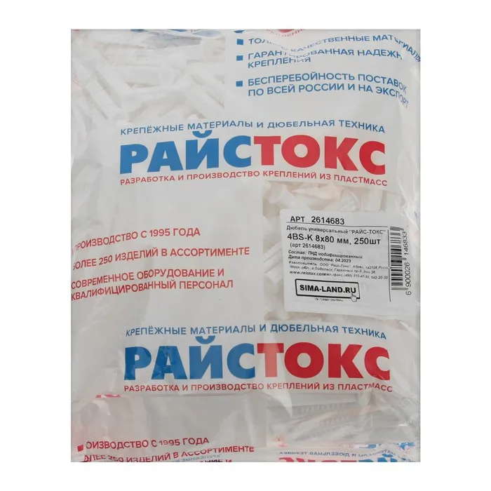 Дюбель РАЙС-ТОКС 4 BS-K, универсальный, c бортиком, полиэтиленовый, 8x80 мм, 250 шт — Характеристики