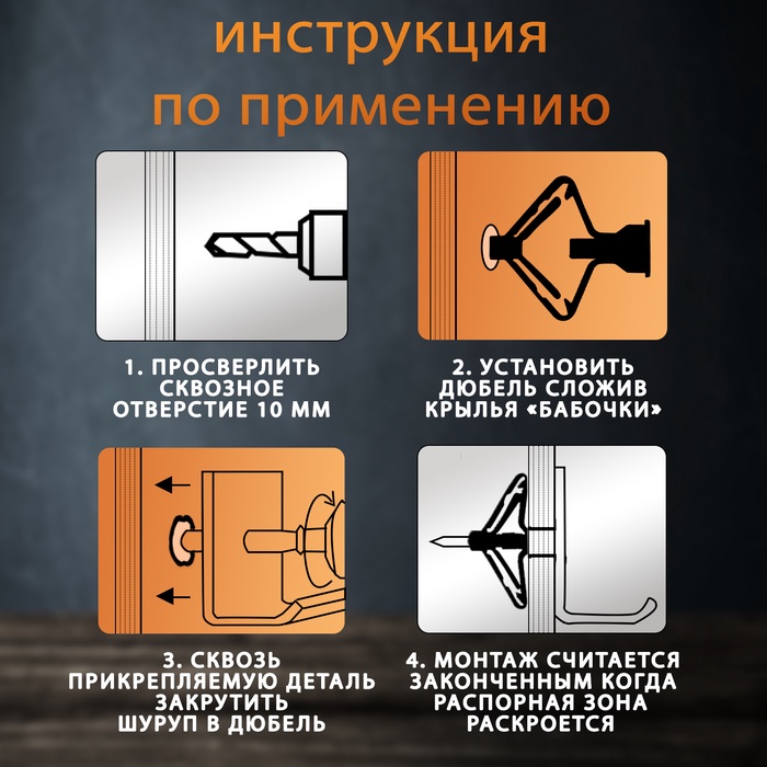 Дюбель ТУНДРА, бабочка, для гипсокартона, пластиковый, 35×32 мм, 25 шт. — Характеристики