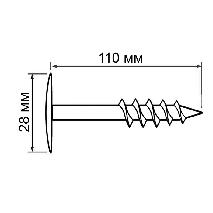 Дюбель ТУНДРА, для изоляционных материалов, винтовой, 28×110 мм, 50 шт. — Характеристики