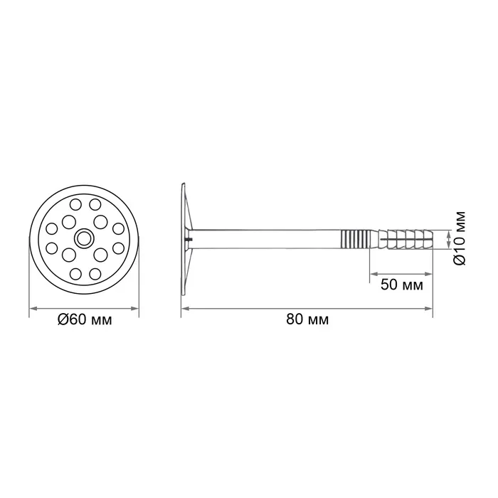 Дюбель ТУНДРА, для утеплителя, с пластиковым гвоздем, 10×80 мм, черный, 50 шт. — Характеристики