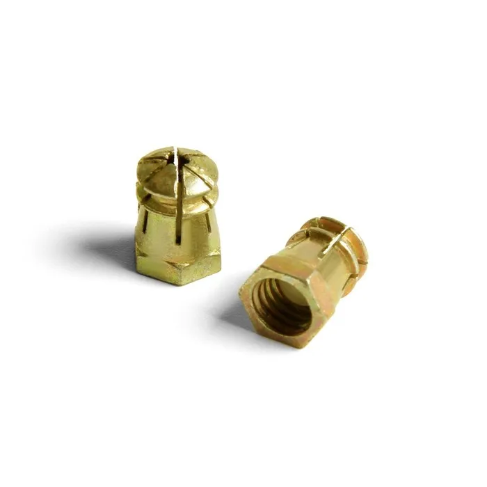 Дюбель "ТУНДРА" используется для соединения различных элементов мебели и работает, как дюбель: при вкручивании винта лепестки «бусолы» раздвигаются, фиксируя её в отверстии.