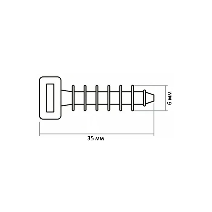 Дюбель под хомут-стяжку используется для крепления кабельных хомутов при необходимости крепления кабелей по бетонным, кирпичным и им подобным несущим поверхностям.