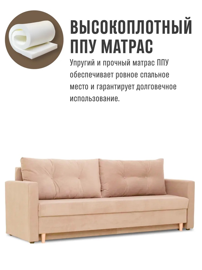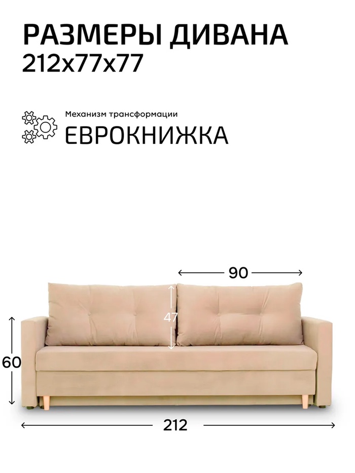 Диван прямой «Киото – Лайт», механизм еврокнижка, велюр, цвет бежевый — Характеристики