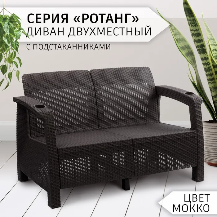 Диван "Ротанг" произведен из высококачественного полипропилена, имитирующего плетение из ротанга.