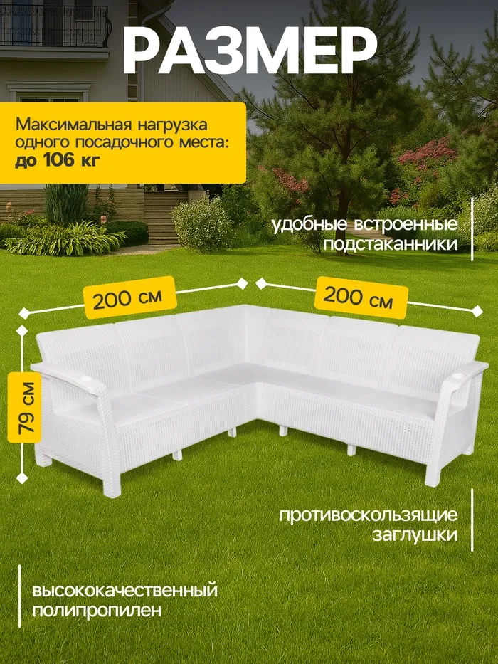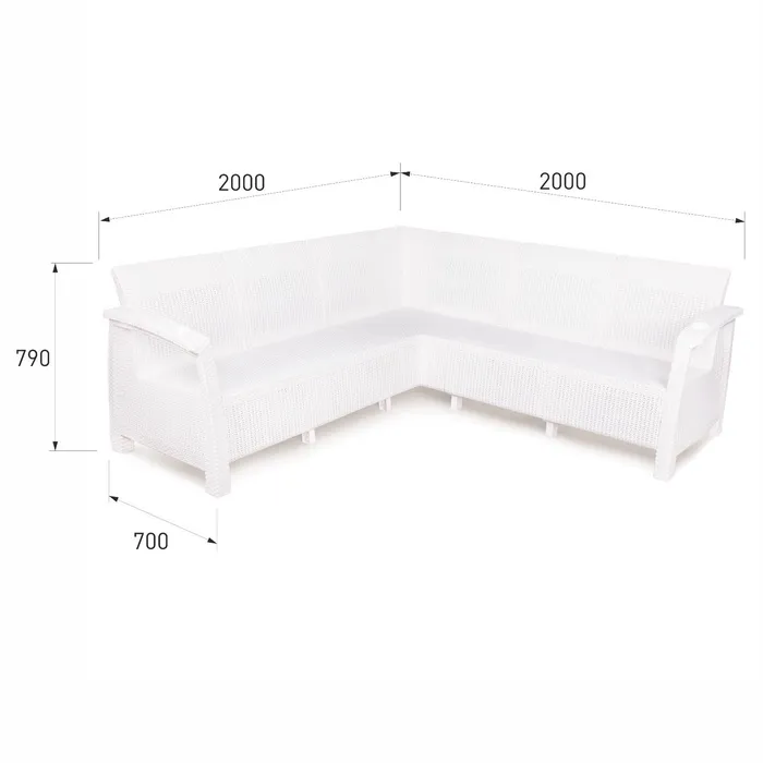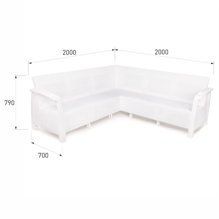 Диван «Ротанг» угловой, 200×200×79 см, белый, с подстаканниками — Характеристики