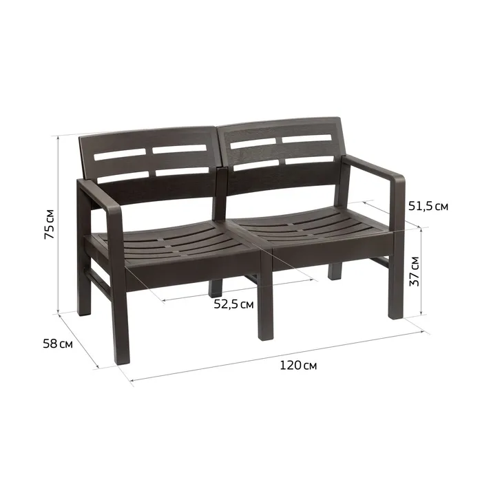 Диван садовый «Рейки», пластик, 58×120×75 см, двухместный, мокко — Характеристики