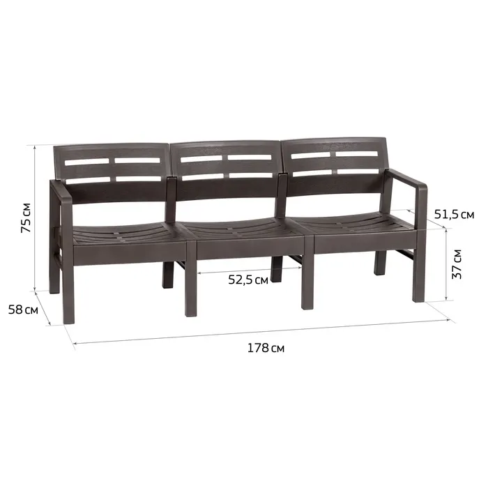 Диван садовый «Рейки», пластик, 58×178×75 см, трёхместный, мокко — Характеристики