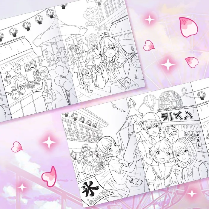• Одна длинная раскраска размером 120 см с изображениями кавайных аниме-персонажей.