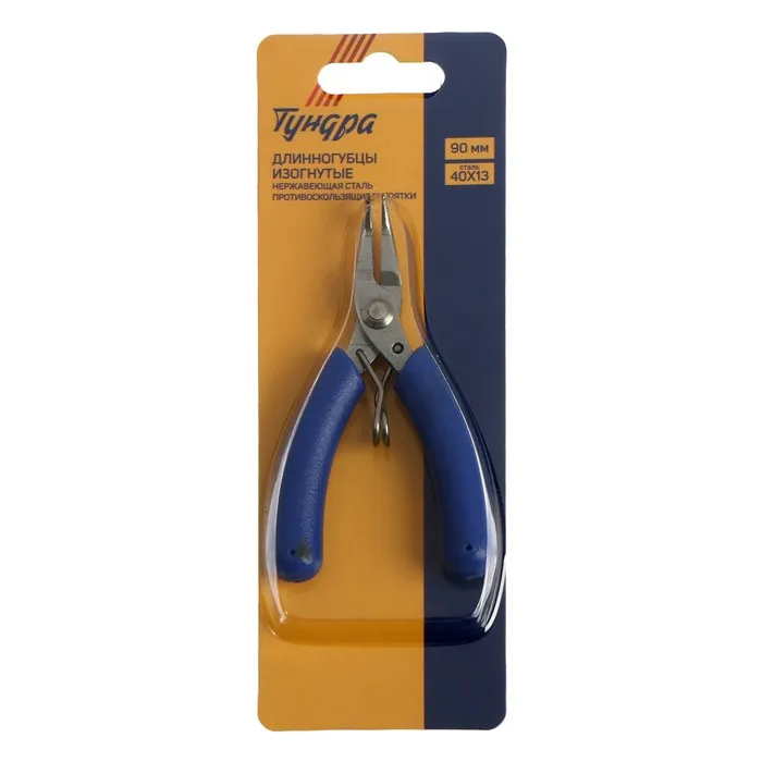 Длинногубцы изогнутые для электроники ТУНДРА mini, нерж. сталь, противоск. рукоятки, 90 мм — Характеристики