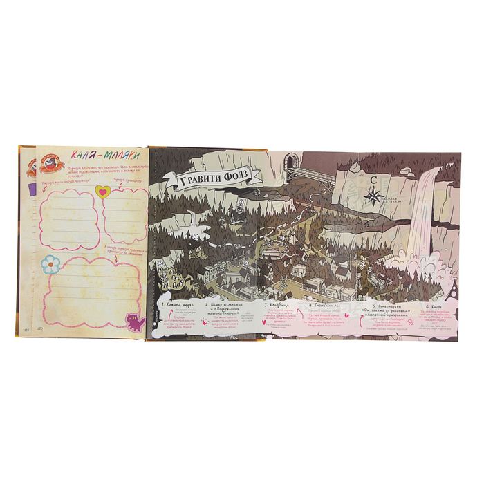 Это самая полная инструкция по выживанию для всех тех, кто решит отправиться в городок Гравити Фолз. Тайные местечки, секретные шифры, встречи с неведомым и способы защиты от него. Веселье гарантировано!
