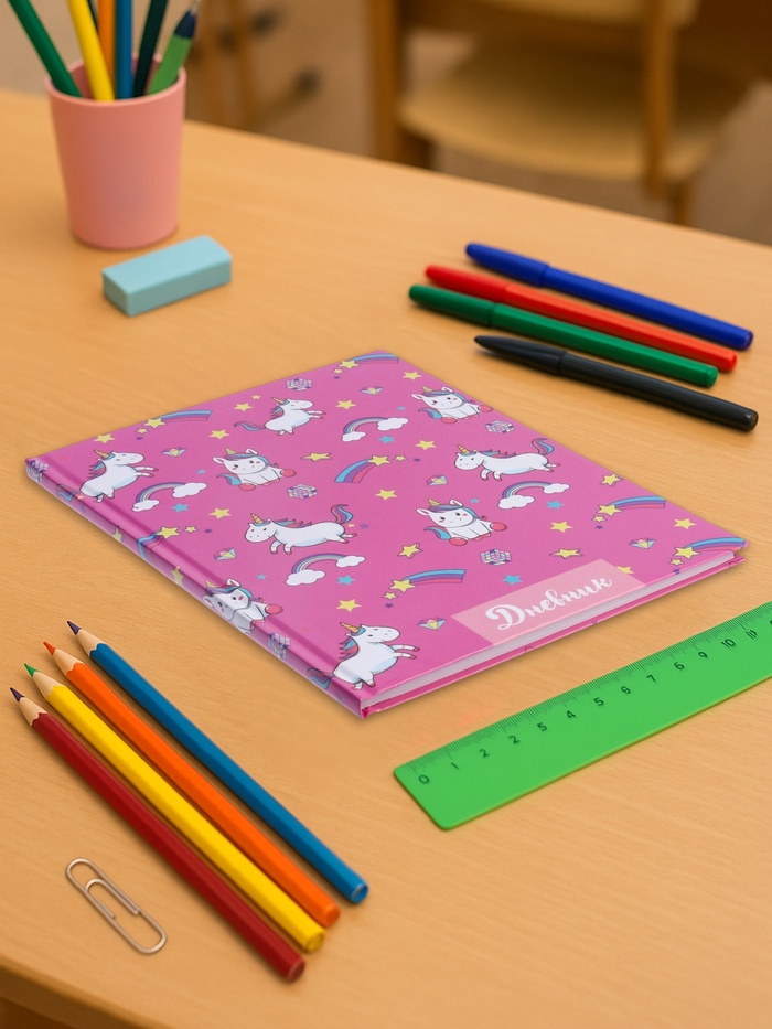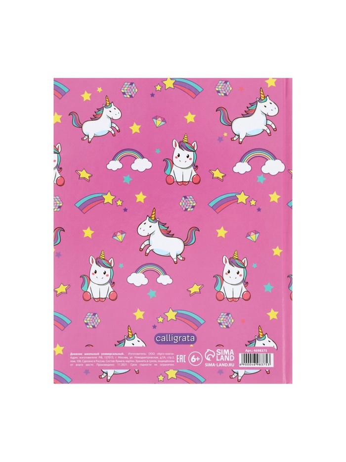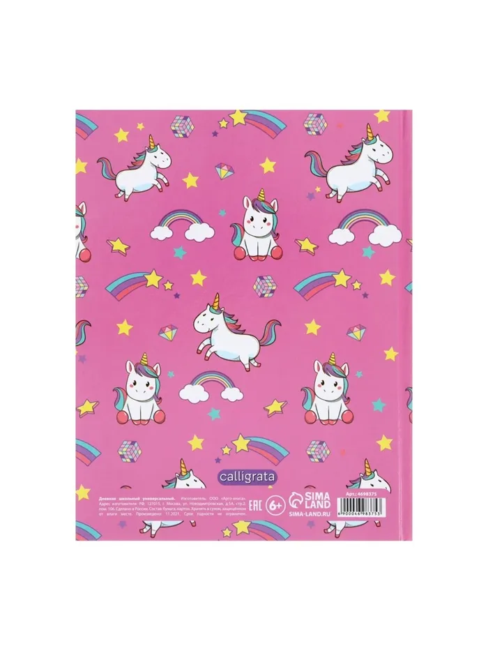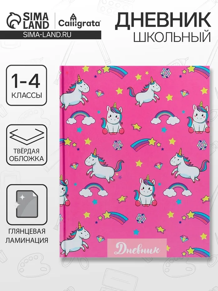 Дневник для 1-4 классов, "Единороги. Паттерн", твердая обложка 7БЦ, глянцевая ламинация, 48 листов — Характеристики