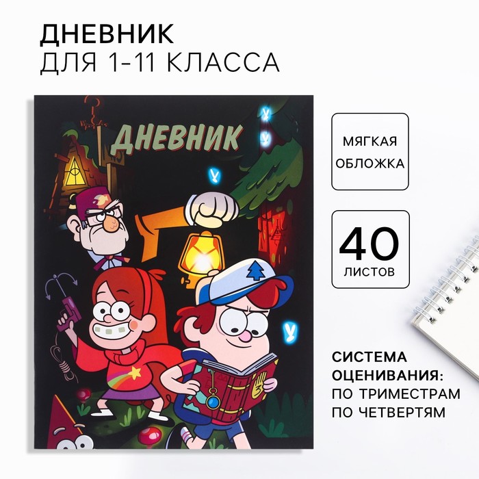 Дневник школьный 1-11 класс, в мягкой обложке, 40 л., «Гравити Фолз» — Характеристики