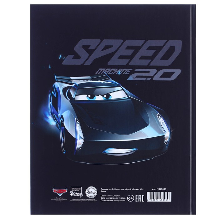 Дневник школьный, 1-11 класс в твёрдой обложке, с тиснением, 40 л, Тачки — Характеристики