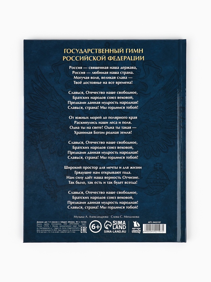 Дневник школьный 1-4 класс «Россия», твердая обложка 7БЦ, глянцевая ламинация, 48 листов — Характеристики