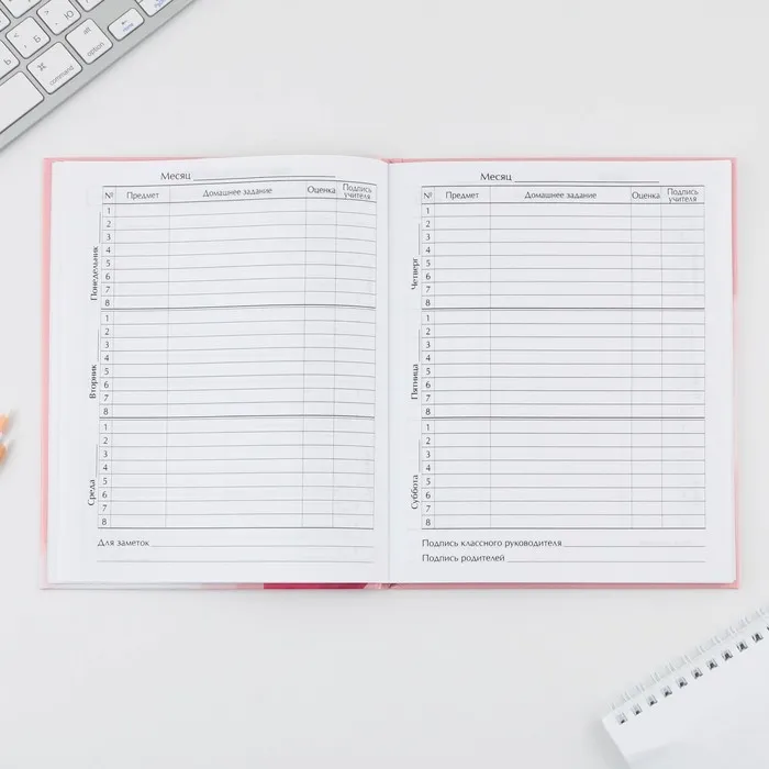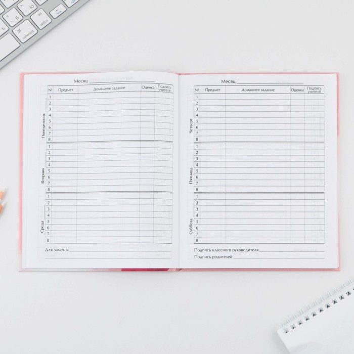 Школьный дневник — это главный помощник ученика! В нём удобно записывать домашние задания, оценки и важные заметки.