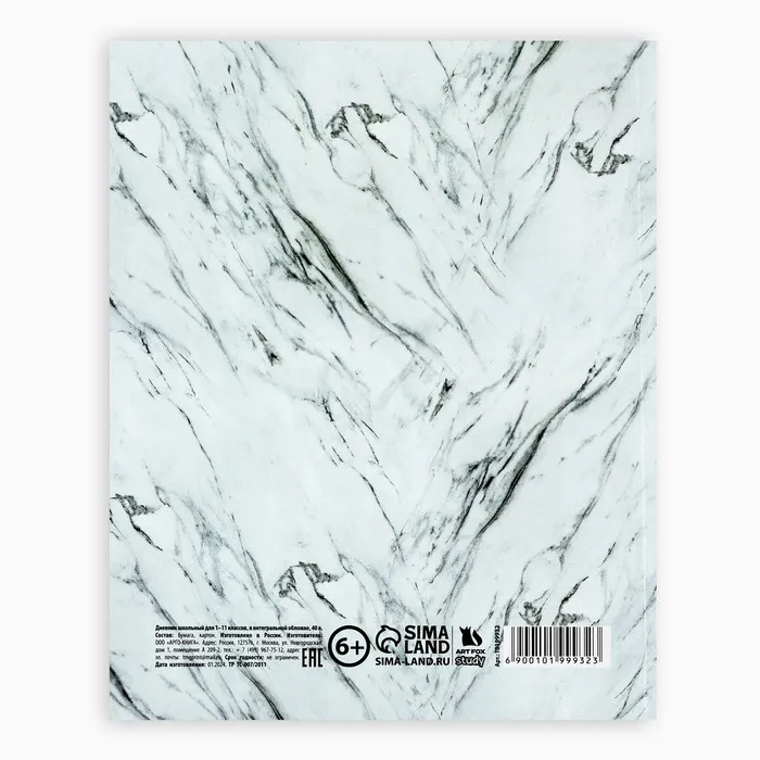 Дневник школьный для 1-11 класса, в интегральной обложке, 40 л. «Мрамор серый» — Характеристики
