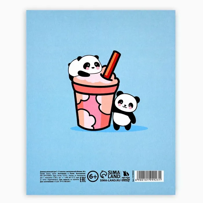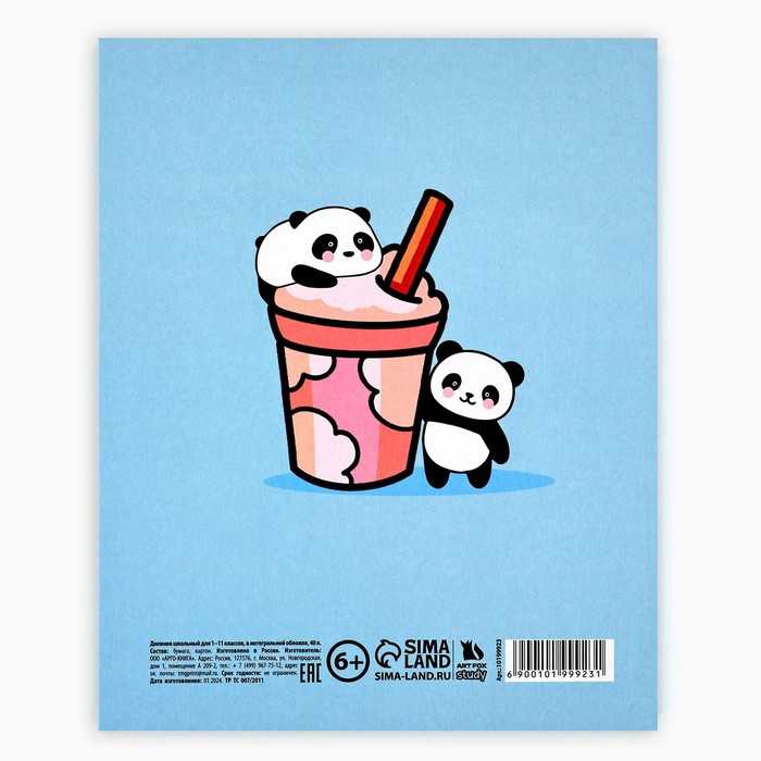 Дневник школьный для 1-11 класса, в интегральной обложке, 40 л. «Панда» — Характеристики