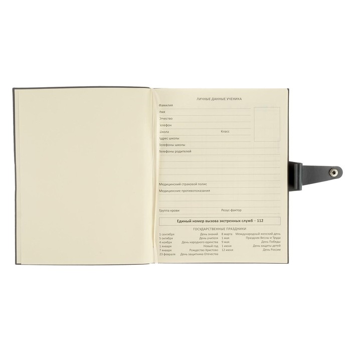 Дневник "deVENTE. Favourite. Grey" универсальный блок, офсет 1 краска, белая бумага 80 г/м², мягкая обложка из искусственной кожи c хлястиком на кнопке и держателем для ручки, тиснение фольгой, 1 ляссе