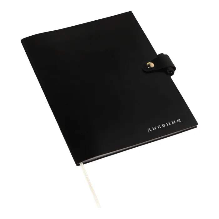 Дневник "deVENTE. Favourite. Black" универсальный блок, офсет 1 краска, белая бумага 80 г/м², мягкая обложка из искусственной кожи c хлястиком на кнопке и держателем для ручки, тиснение фольгой, 1 ляссе