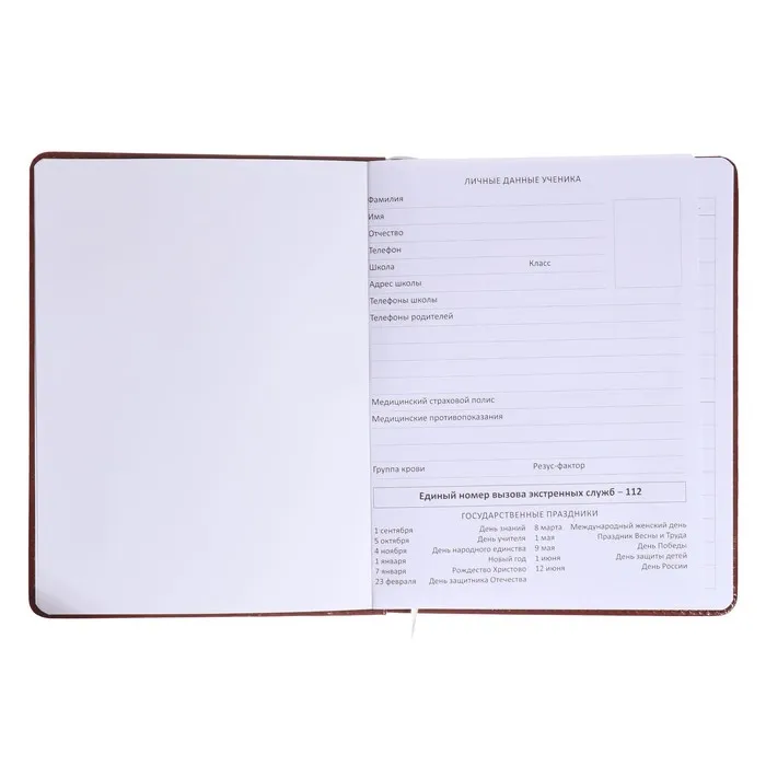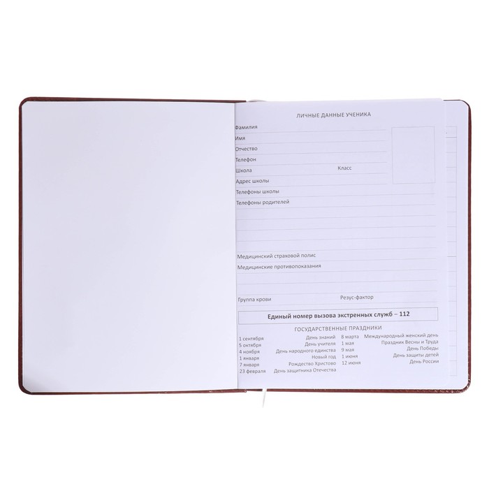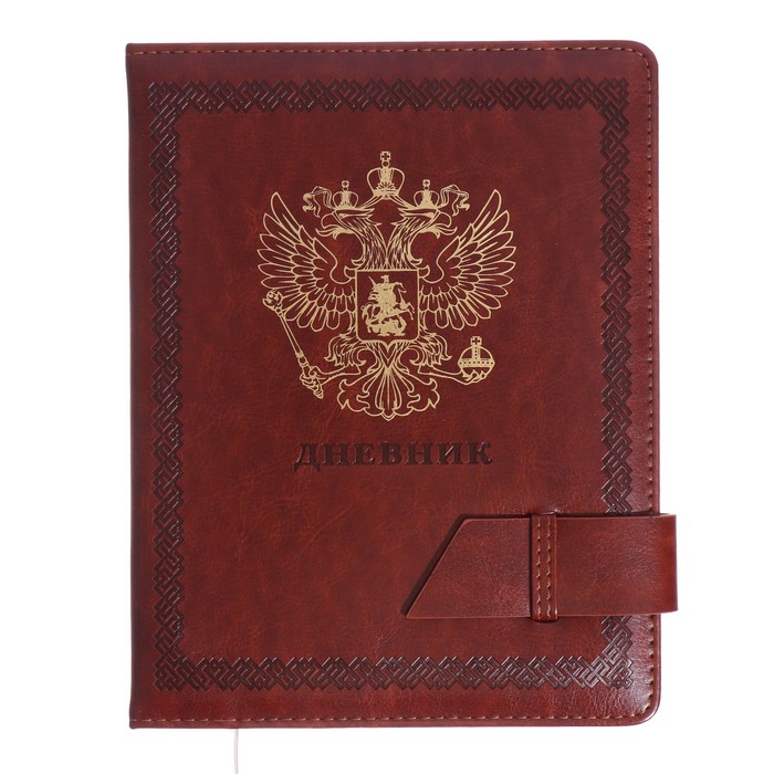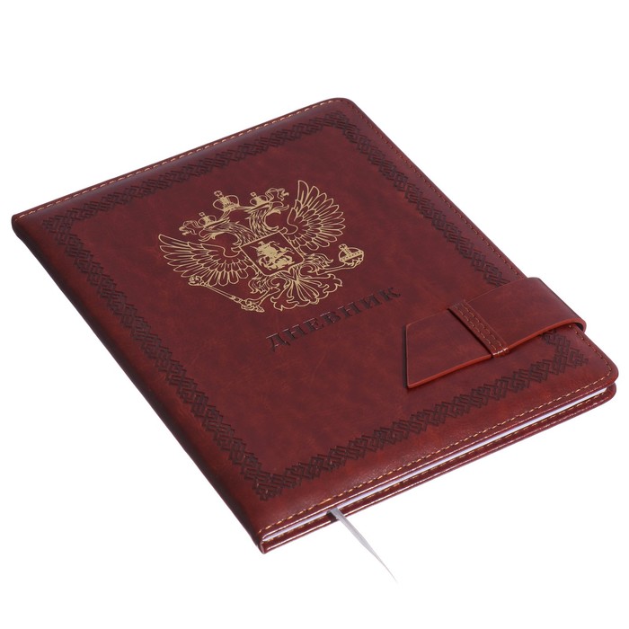 Дневник школьный для 1-11 классов «Герб», твёрдая обложка, искусственная кожа, коричневая обложка, ляссе, 80 г/м² — Характеристики