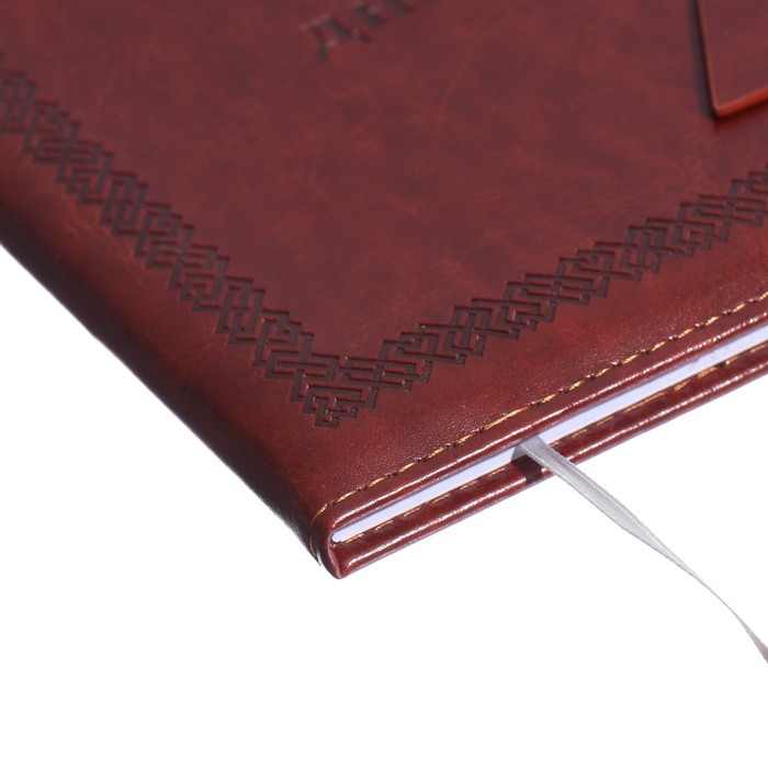 Дневник "deVENTE. Герб", коричневая обложка, универсальный блок, офсет 1 краска, белая бумага 80 г/м2, твердая обложка из искусственной кожи с поролоном, хлястик, термо тиснение, тиснение фольгой, отстрочка, 1 ляссе.