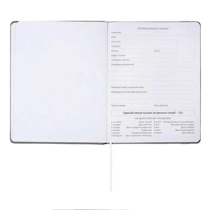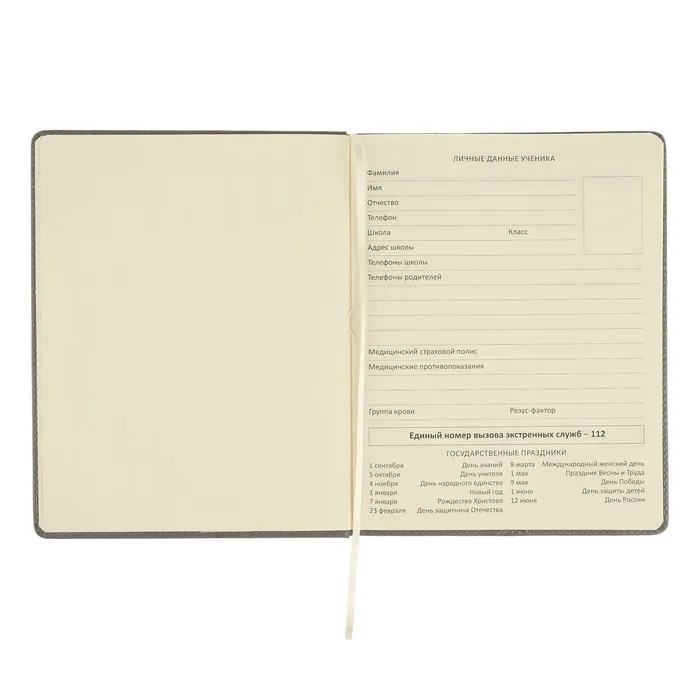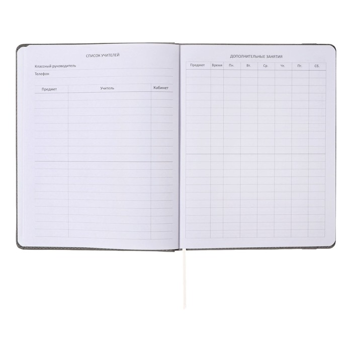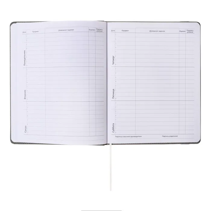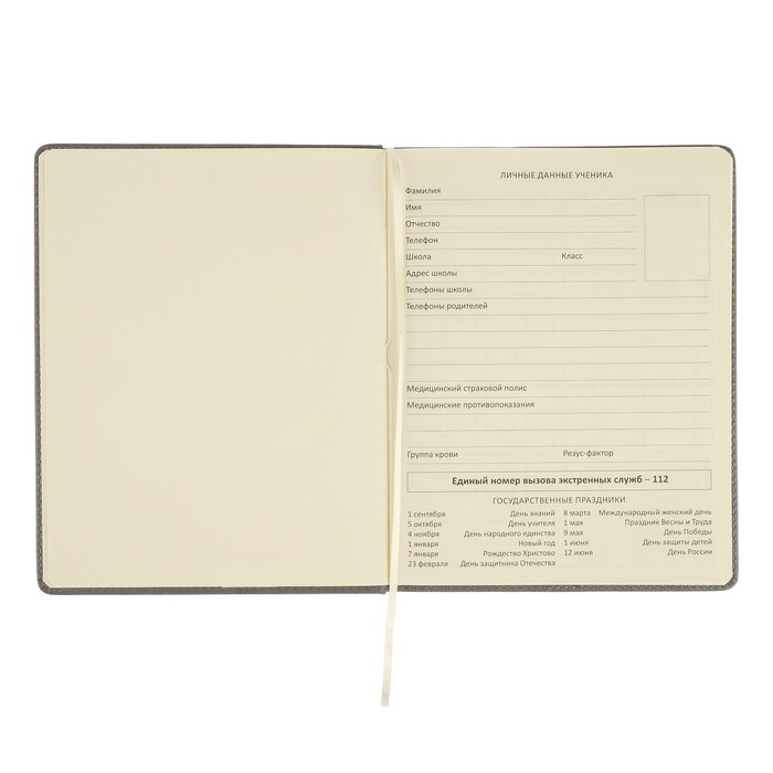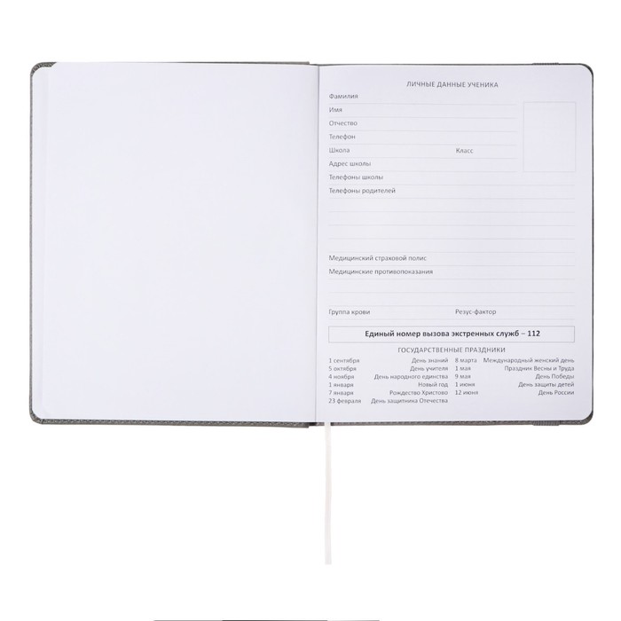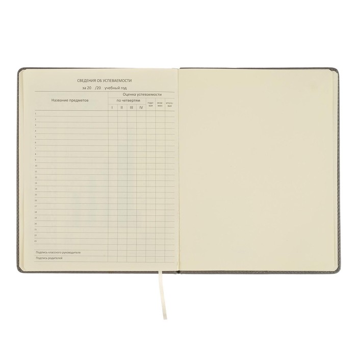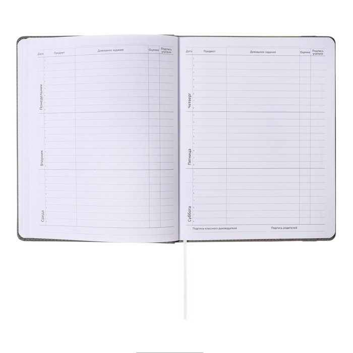 Дневник школьный для 1-11 классов Grey, твёрдая обложка, искусственная кожа, резинка, ляссе, тонированный блок, 48 листов — Характеристики